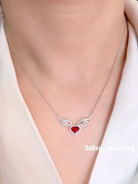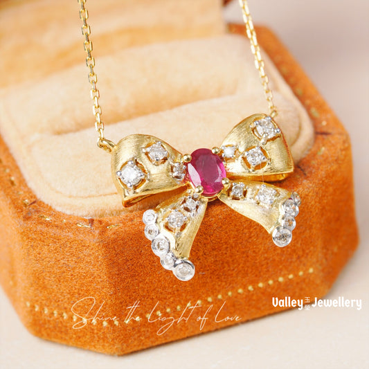 18K Yellow Gold Ruby Bowtie Pendant with Chain