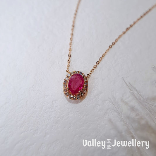 18K Gold Ruby Pendant with diamonds and Necklace