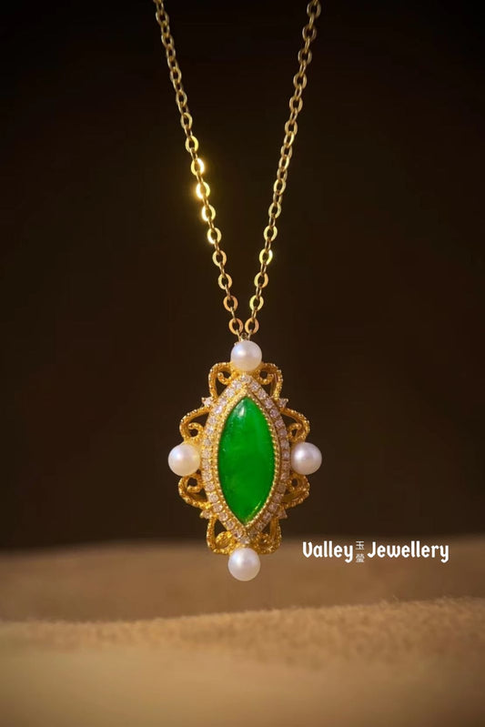 18K Gold Jadeite Pendant with necklace